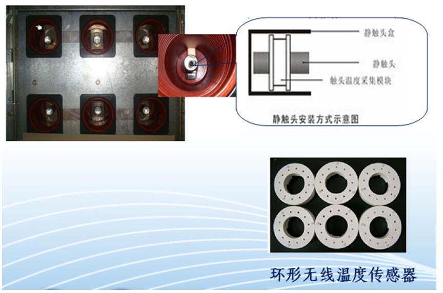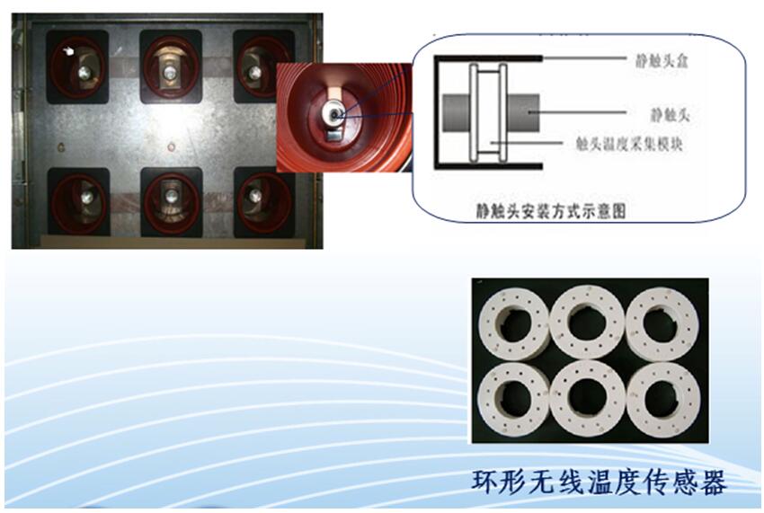 3、定觸頭瓷套內腔埋入式測溫,紅外或無線信號傳輸方式
