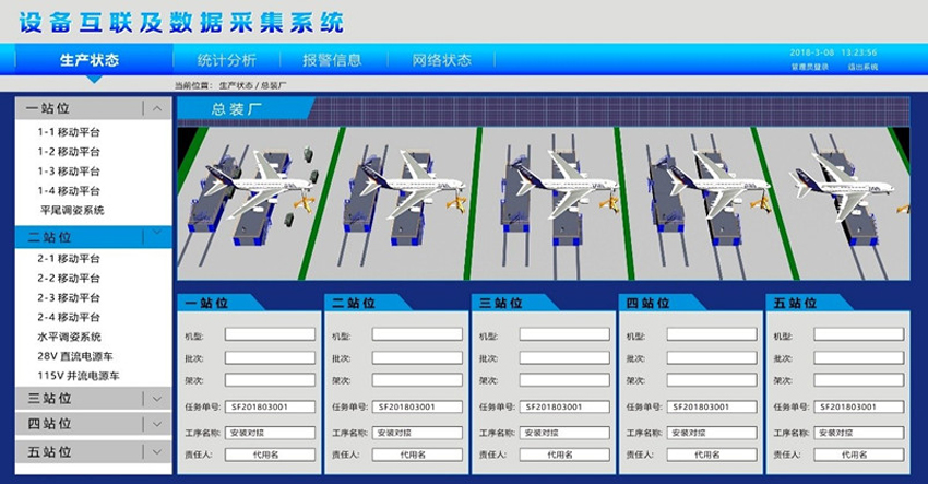目前有一定的智能工廠基礎,打通設備、車間、企業(yè)等垂直層次,通過設備及應用集成、工藝及生產(chǎn)業(yè)務集成優(yōu)化,實現(xiàn)飛機總裝智能化生產(chǎn),提升飛機生產(chǎn)的精益化管理水平。